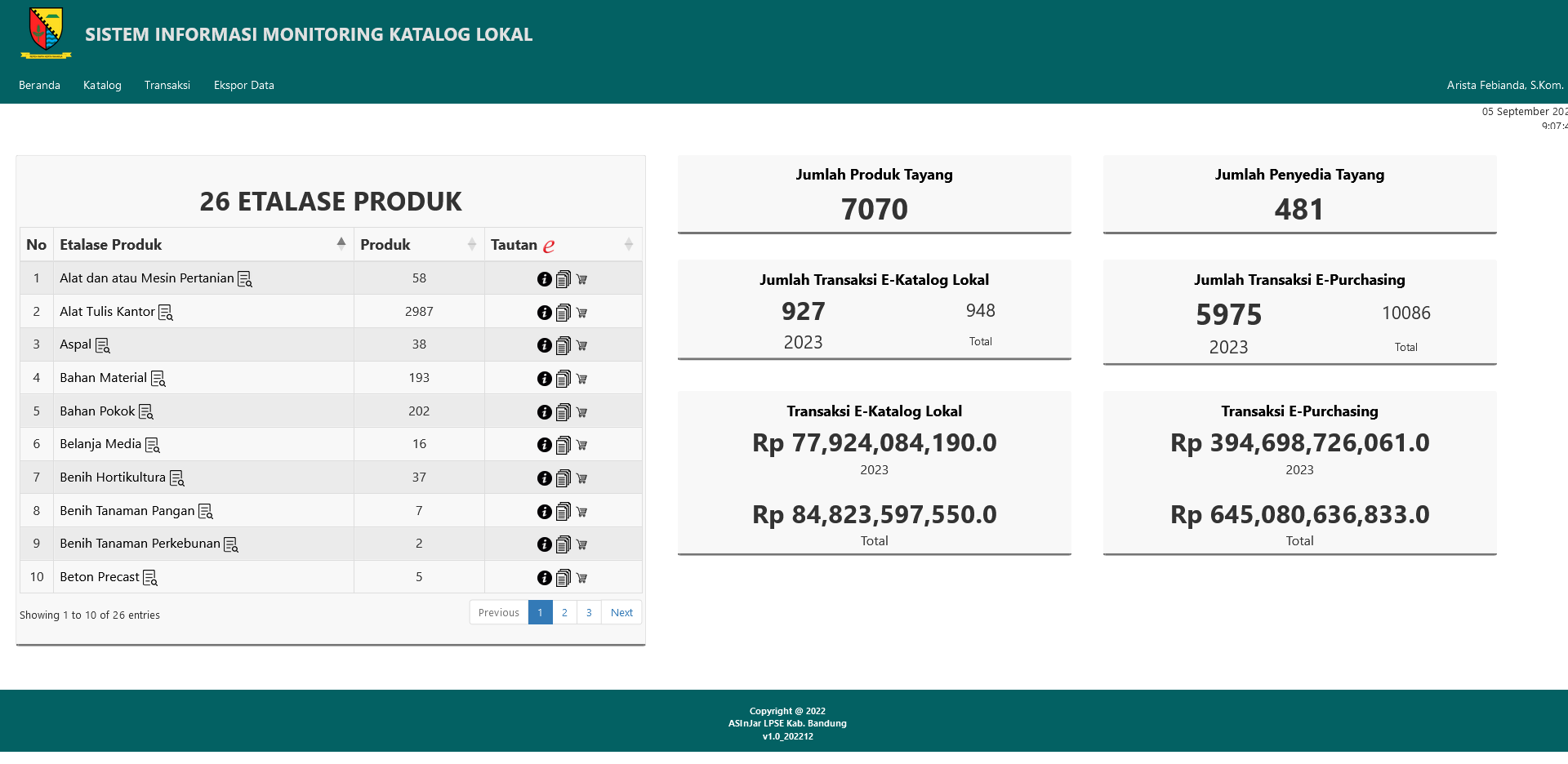 Aplikasi yang memiliki informasi daftar produk E-Katalog Lokal Kabupaten Bandung dan Transaksi pengadaan secara E-Purchasing.